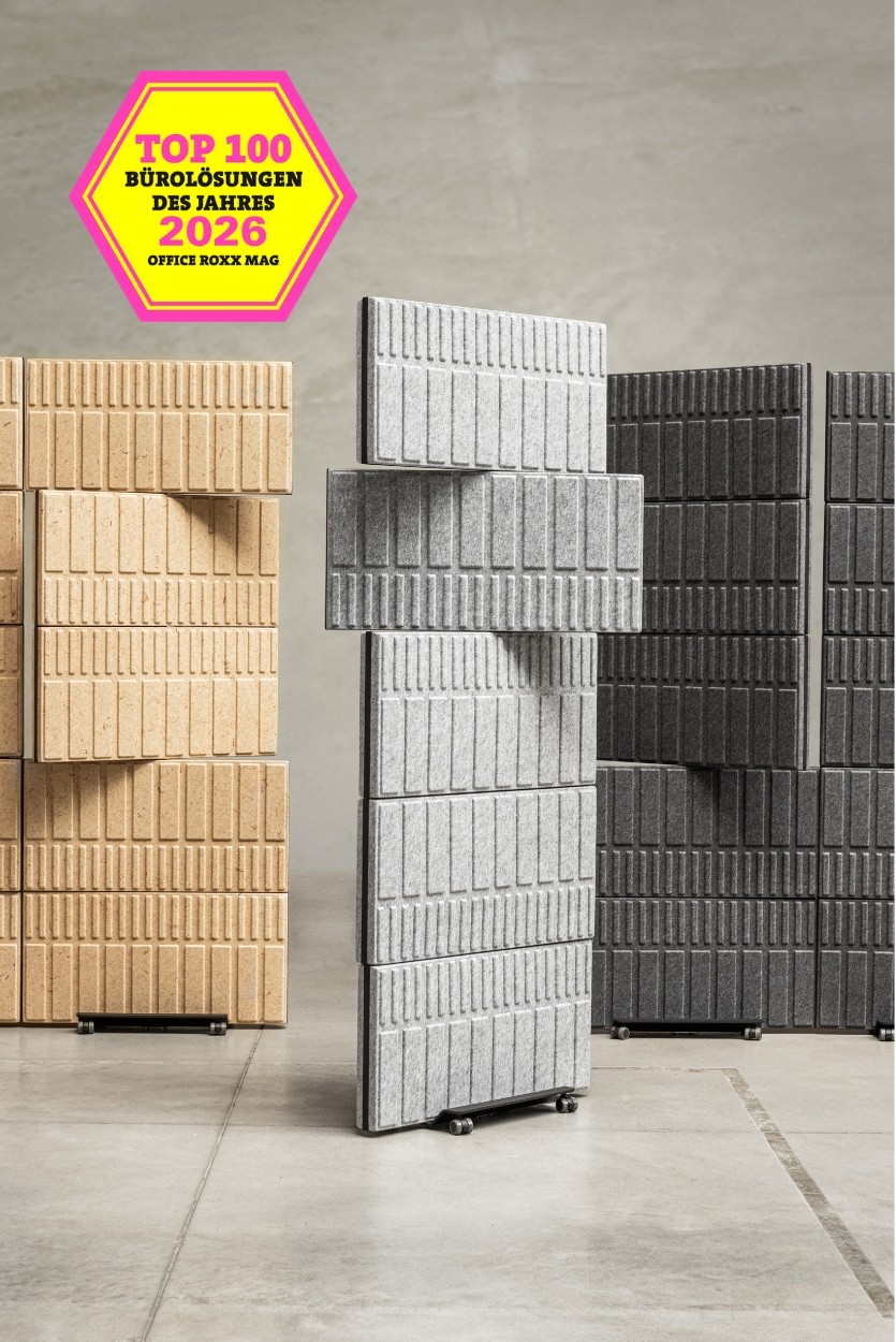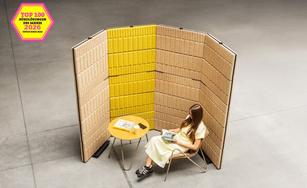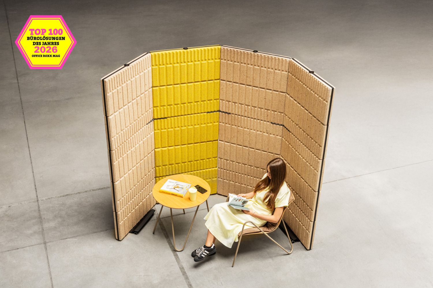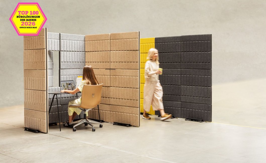 The editorial team recognised the system for combining functionality with sustainable design. Mobile walls divide open-plan space without construction work, and the panels are made from plant-based biocomposite or rPET from recycled PET bottles. This confirms that circular design is not a compromise between aesthetics and environmental responsibility, but simply good design.