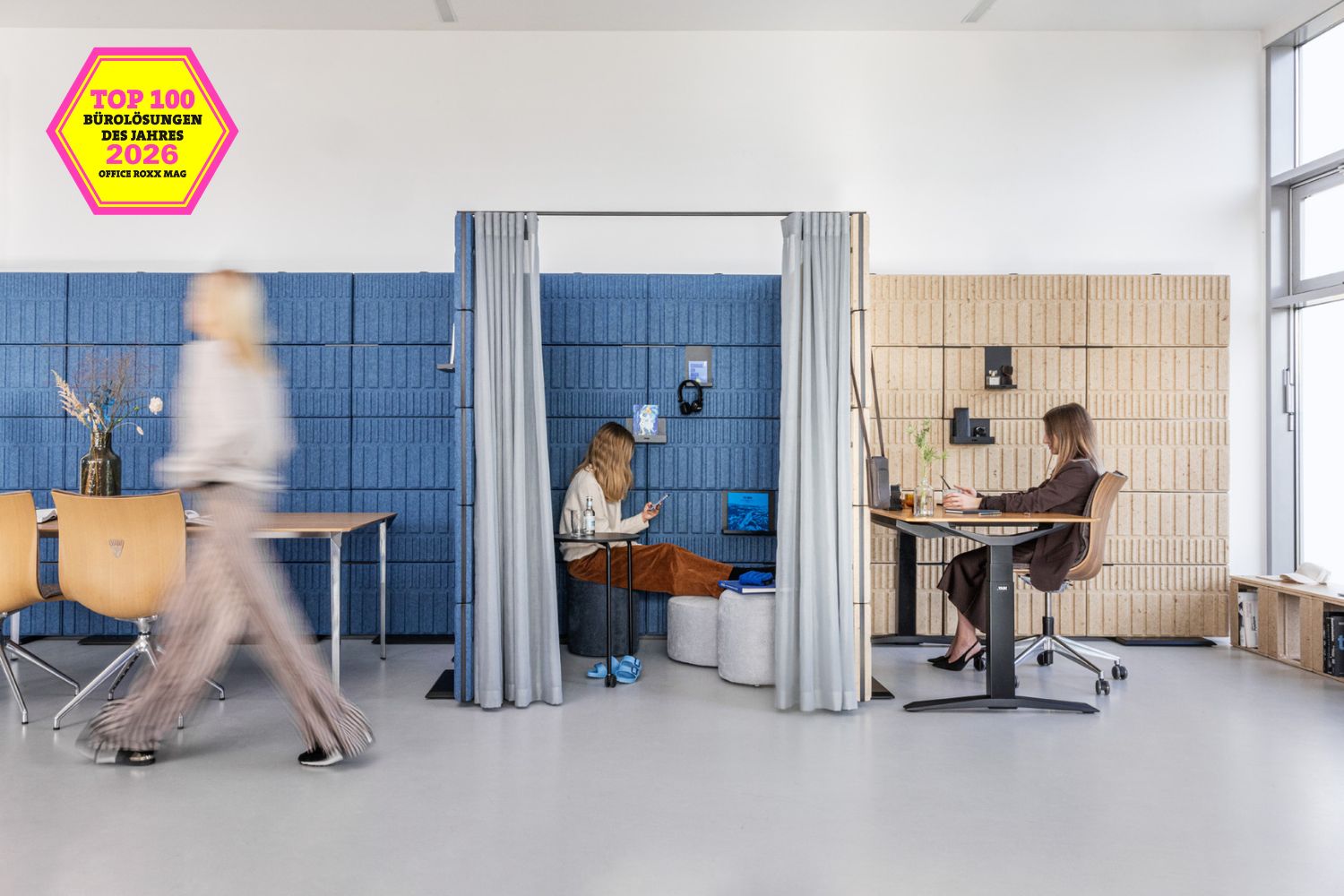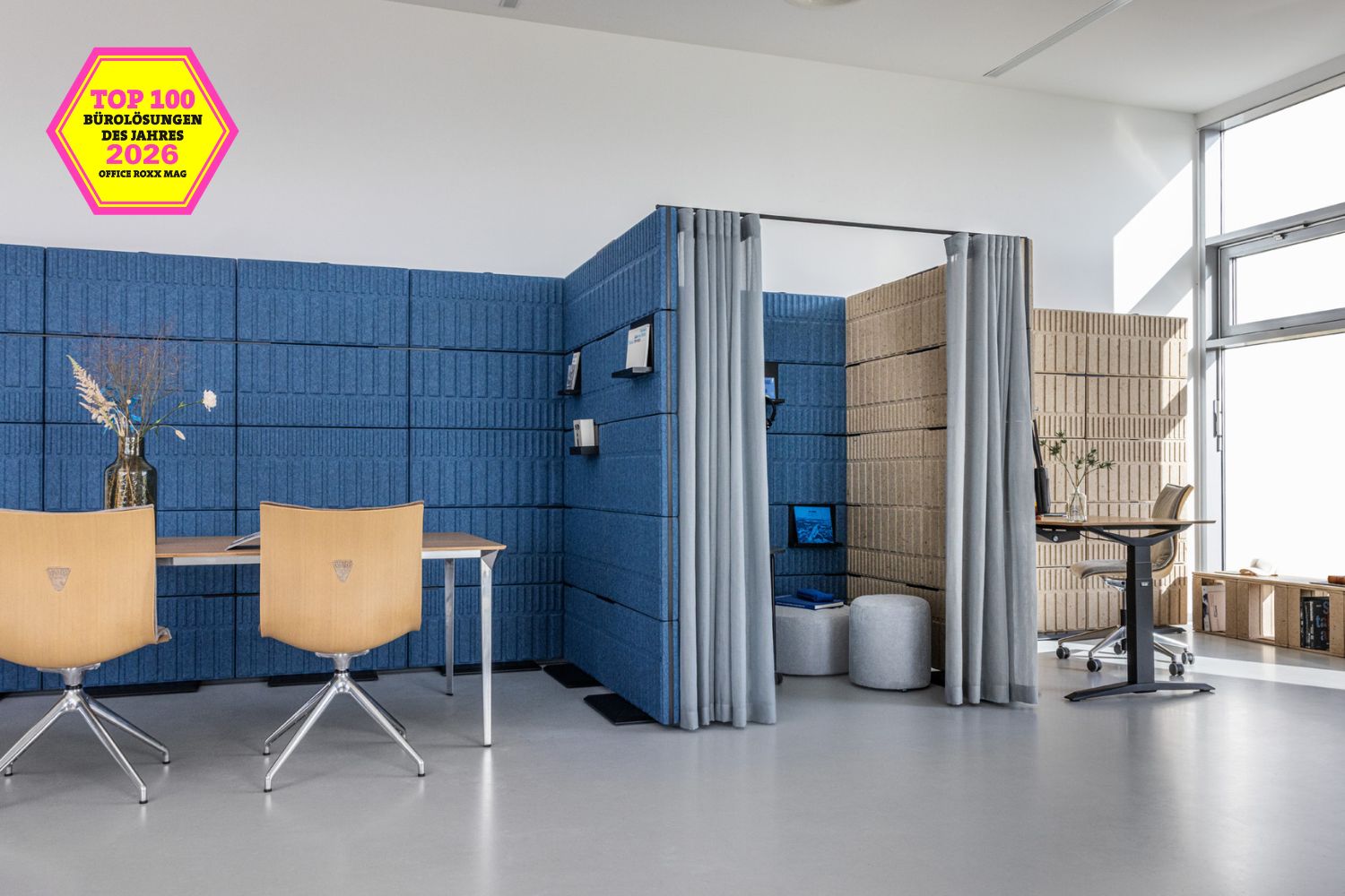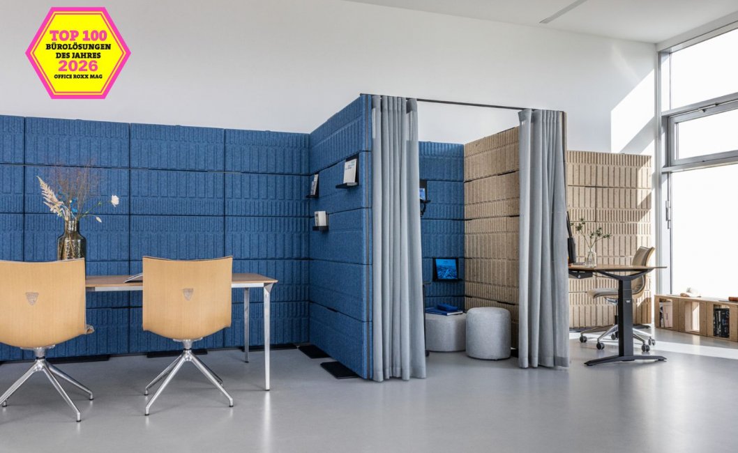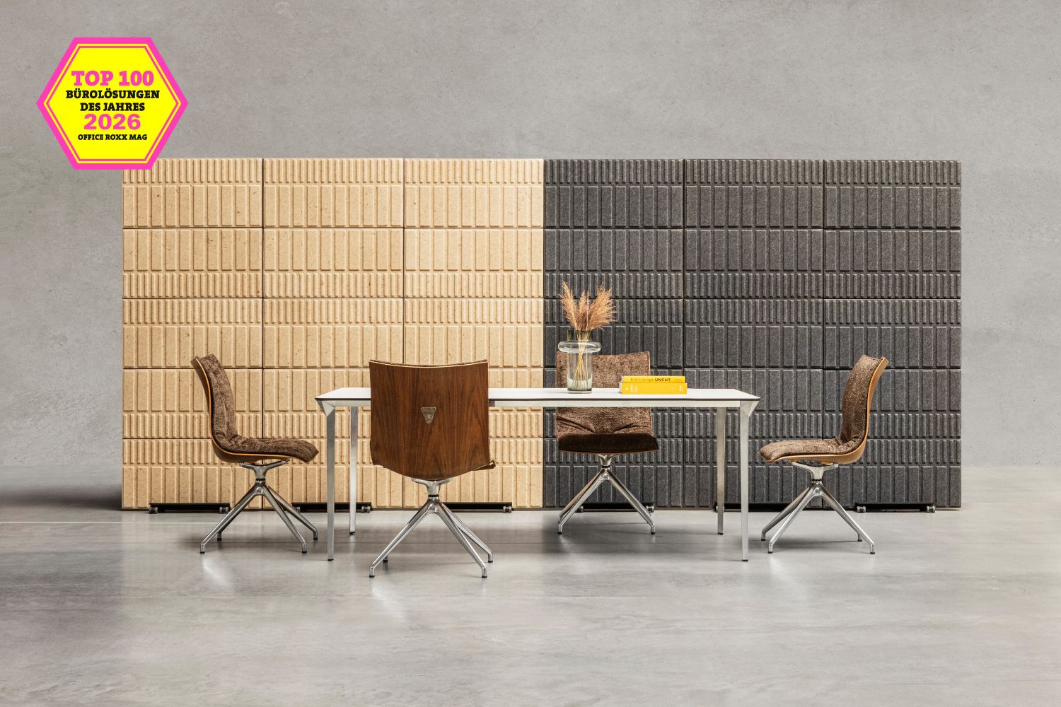 The editorial team recognised the system for combining functionality with sustainable design. Mobile walls divide open-plan space without construction work, and the panels are made from plant-based biocomposite or rPET from recycled PET bottles. This confirms that circular design is not a compromise between aesthetics and environmental responsibility, but simply good design.