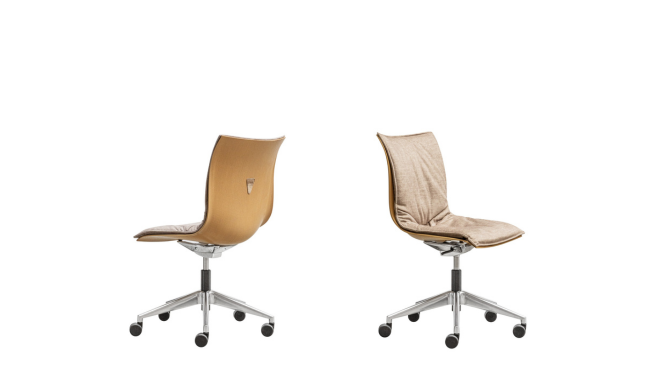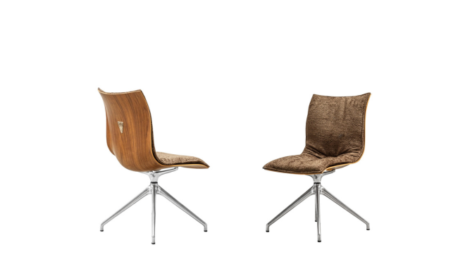 VANK_PEEL lounge and standard chairs will be an excellent choice for common spaces in the office, reception areas, lobbies or cafés. Combined with office and small tables, they encourage meetings in a less formal atmosphere — so much in demand in the offices and public areas of today. The name PEEL emphasises the fluidity of forms resembling peelings and reminds us of the possibilities of making use of what has so far been considered waste. Thanks to an innovative 3D technology applied in the manufacturing process and the utilisation of the “reduce” natural veneer, the beech plywood of the seat makes better use of wood resources. Thanks to a special mesh, it is possible to make use of even the smallest scraps of natural veneer. The distinctive sinuous steel frame highlights the fluidity of the design and the organic inspiration behind it.