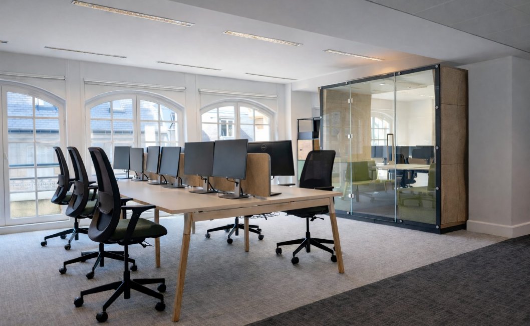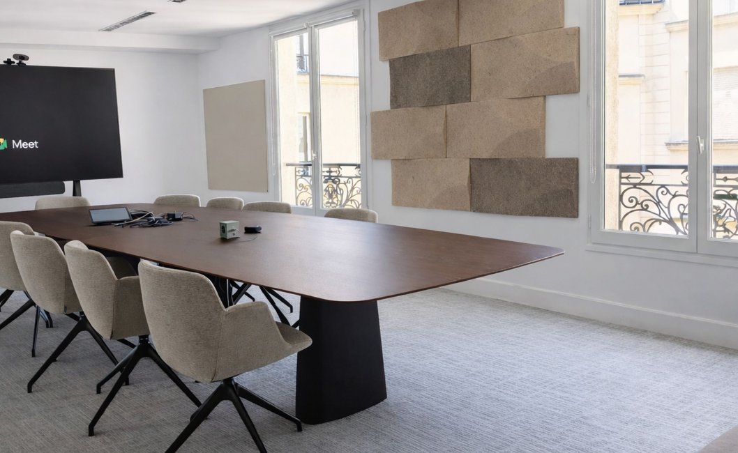 Realizacja projektu w historycznej kamienicy haussmannowskiej niosła ze sobą specyficzne wyzwania architektoniczne. Przestrzeń pod dachami Paryża charakteryzuje się dużą ilością naturalnego światła i licznymi twardymi powierzchniami, co w biurze typu open space generowało problemy z pogłosem i brakiem prywatności.