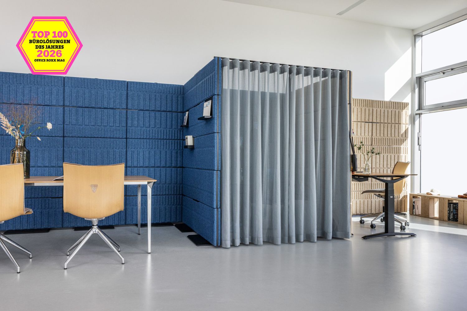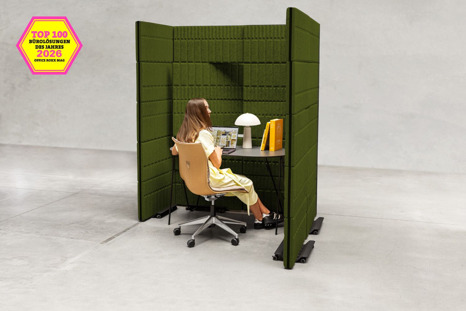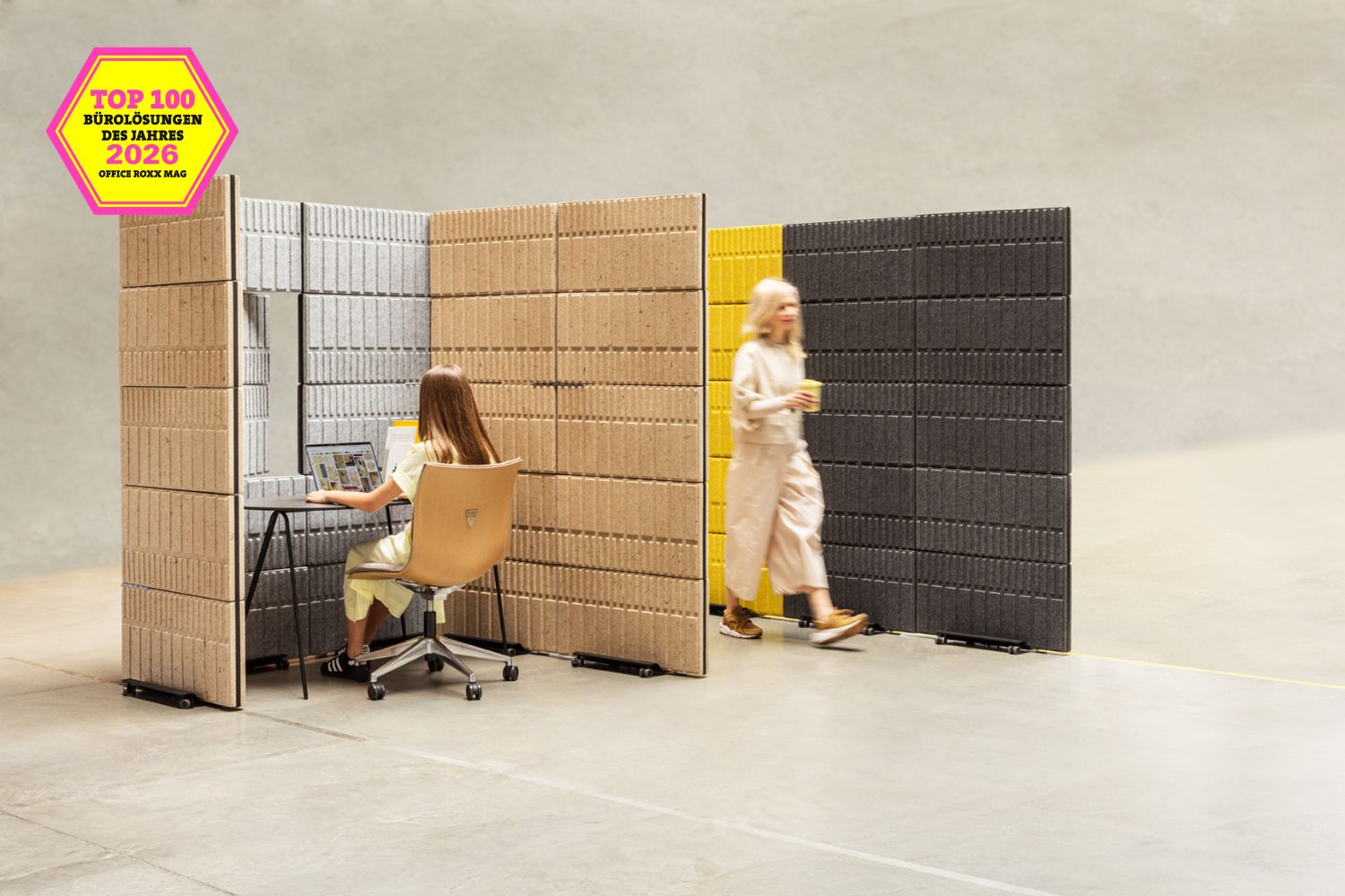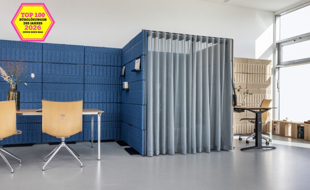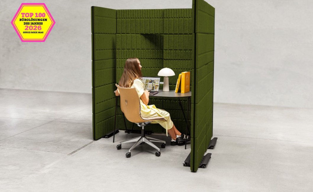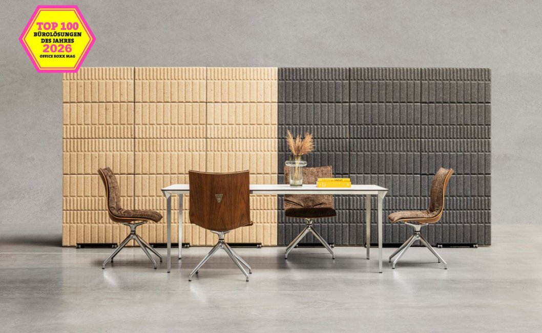 Die Redaktion würdigte das System für die Verbindung von Funktionalität und nachhaltigem Design. Mobile Wände gliedern Open-Space-Flächen ohne bauliche Maßnahmen, und die Paneele bestehen aus einem pflanzenbasierten Biokomposit oder rPET aus recycelten PET-Flaschen. Das bestätigt, dass zirkuläres Design kein Kompromiss zwischen Ästhetik und Umweltverantwortung ist, sondern schlicht gutes Design.